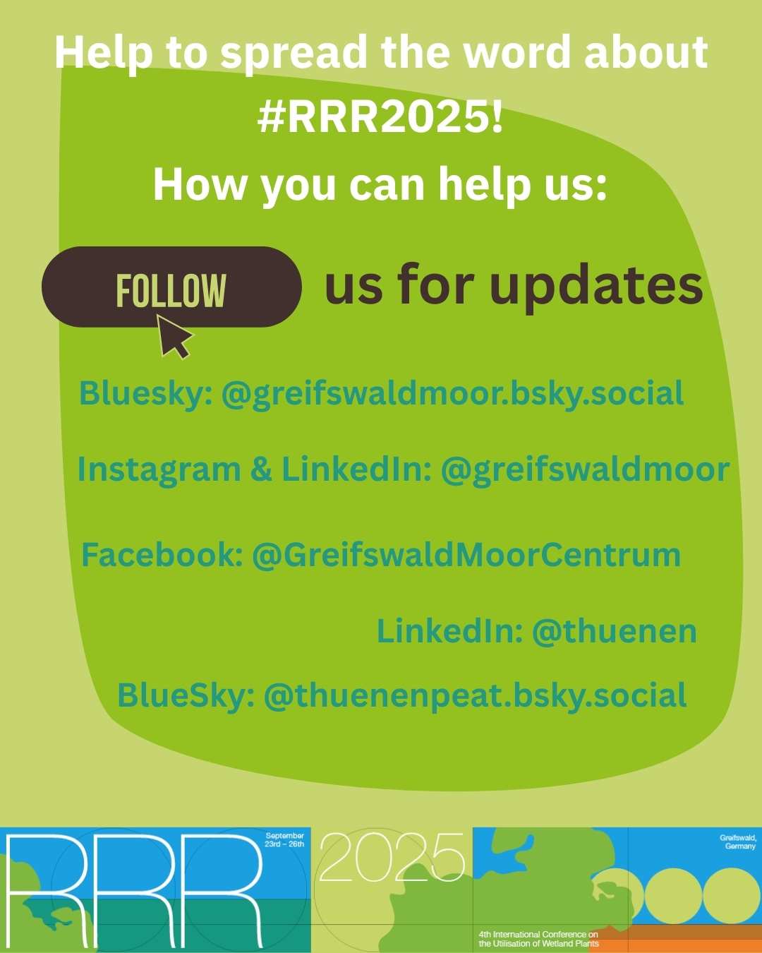 Join us in spreading the word with the help of this RRR2025-social media kit (also available as pdf here) to amplify discussions and discoveries on paludiculture to a wider audience.